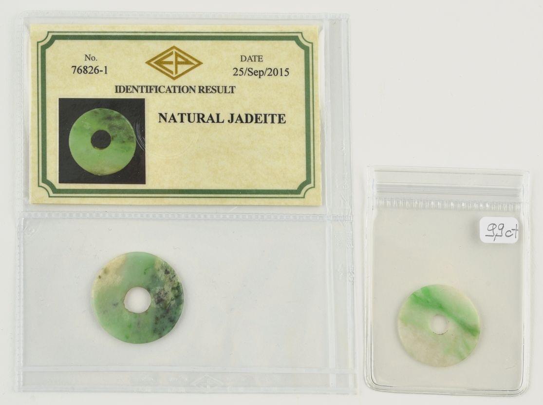 670. Jadéite ancienne en forme de disque Bi de 14.189 ct non traité