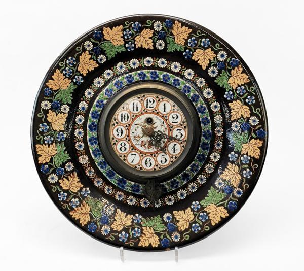 Terre vernissée à décor de vignes et fleurs, D 46 cm