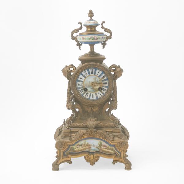 Bronze doré à motif d'une urne néoclassique, cadran émaillé blan...