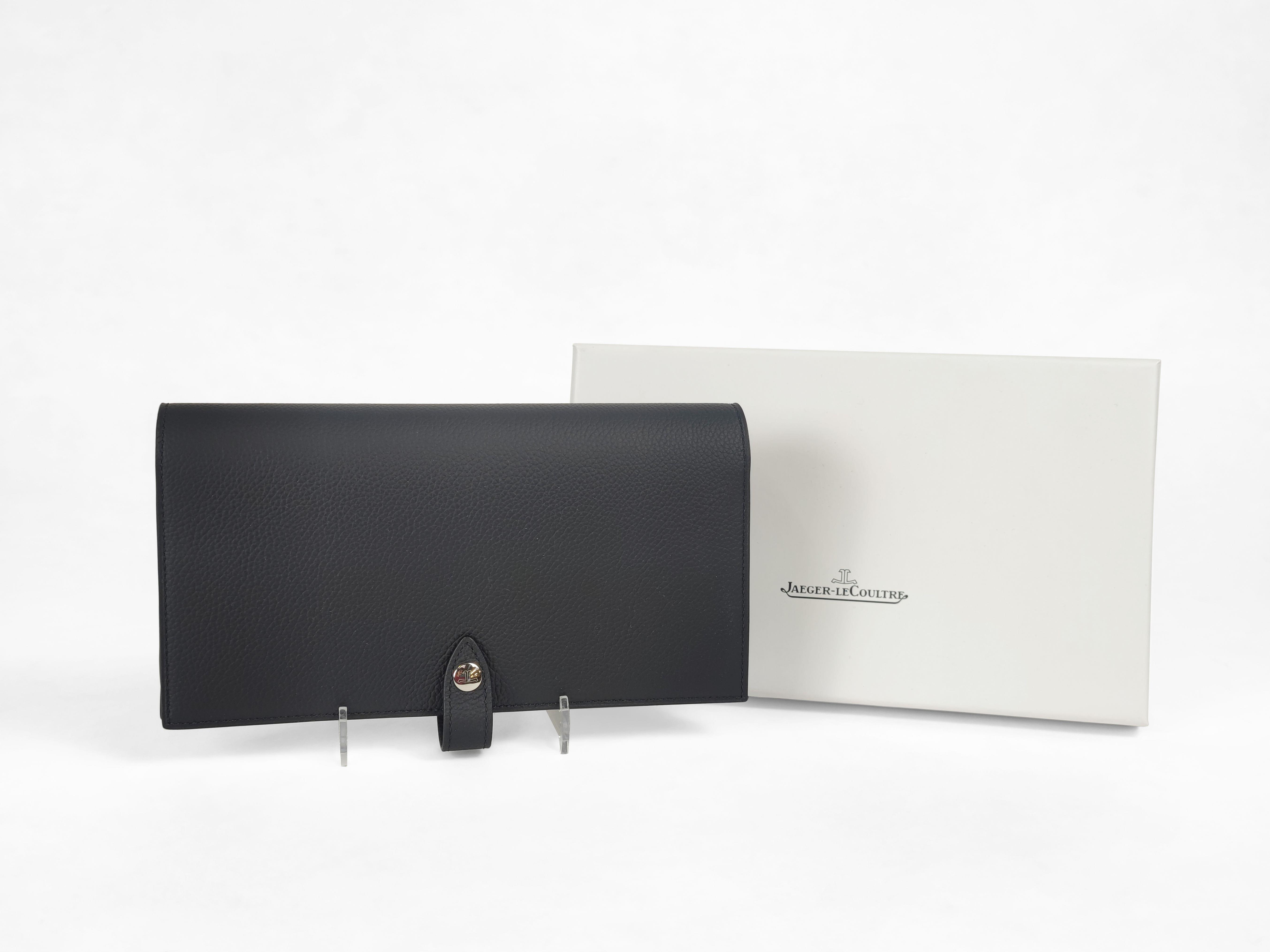 Cuir grainé noir, intérieur en daim orange, 21x12 cm. Avec sa boite