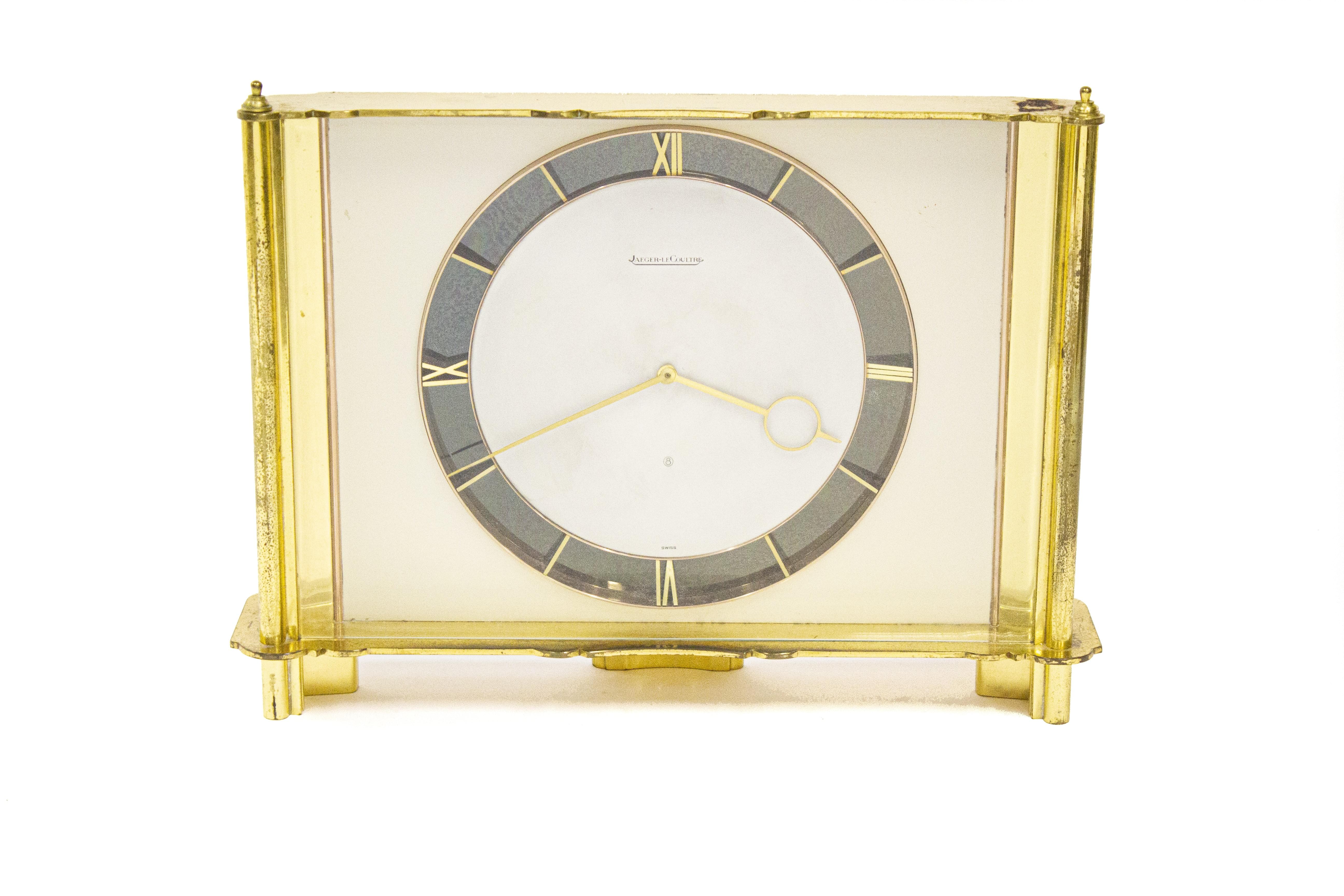 Cadran gris, aiguilles et chiffres romains dorés, mouvement 8 jours, métal doré, 22x28 cm