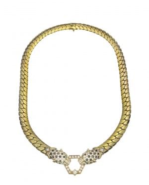 337. O.J. Perrin, collier à maille gourmette plate centré d'un motif...