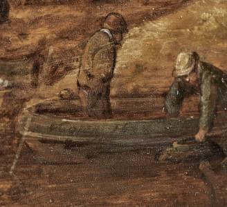 Rive animée de personnages, huile sur panneau, signée, et datée 1638, 47,5x61 cm. Provenance : Collection Jean de Sellon (1736-1810), Genève, puis par descendance directe au propriétaire actuel ; Catalogue raisonné des 215 tableaux les plus capitaux du cabinet de Mr le comte de Sellon, d’Allaman, dont une partie se voit dans son hôtel à Genève, et l’autre dans son château d’Allaman, en Suisse Pays de Vaud, 1795, N° 183