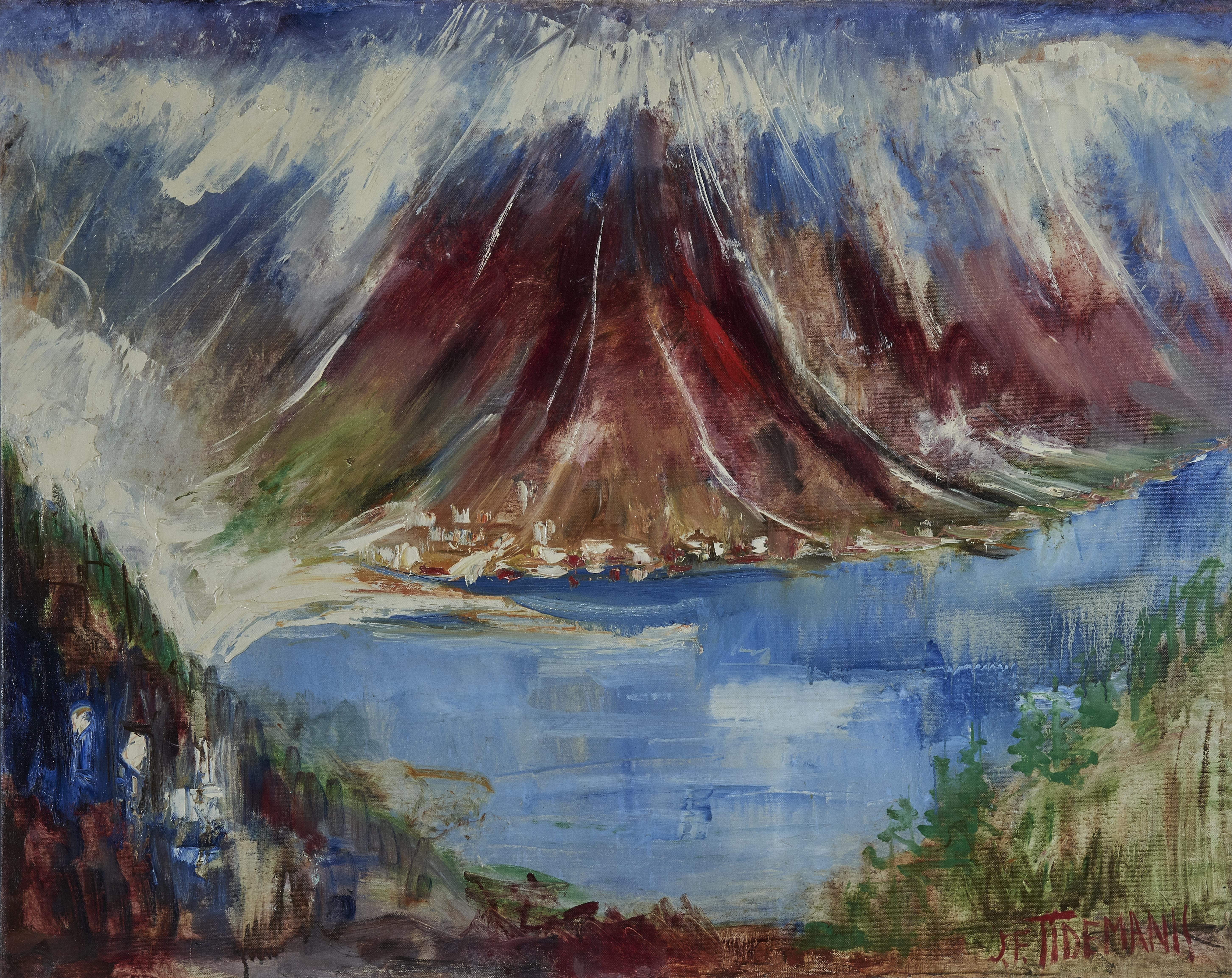 Paysage lacustre, huile sur toile, signée, 80x100 cm