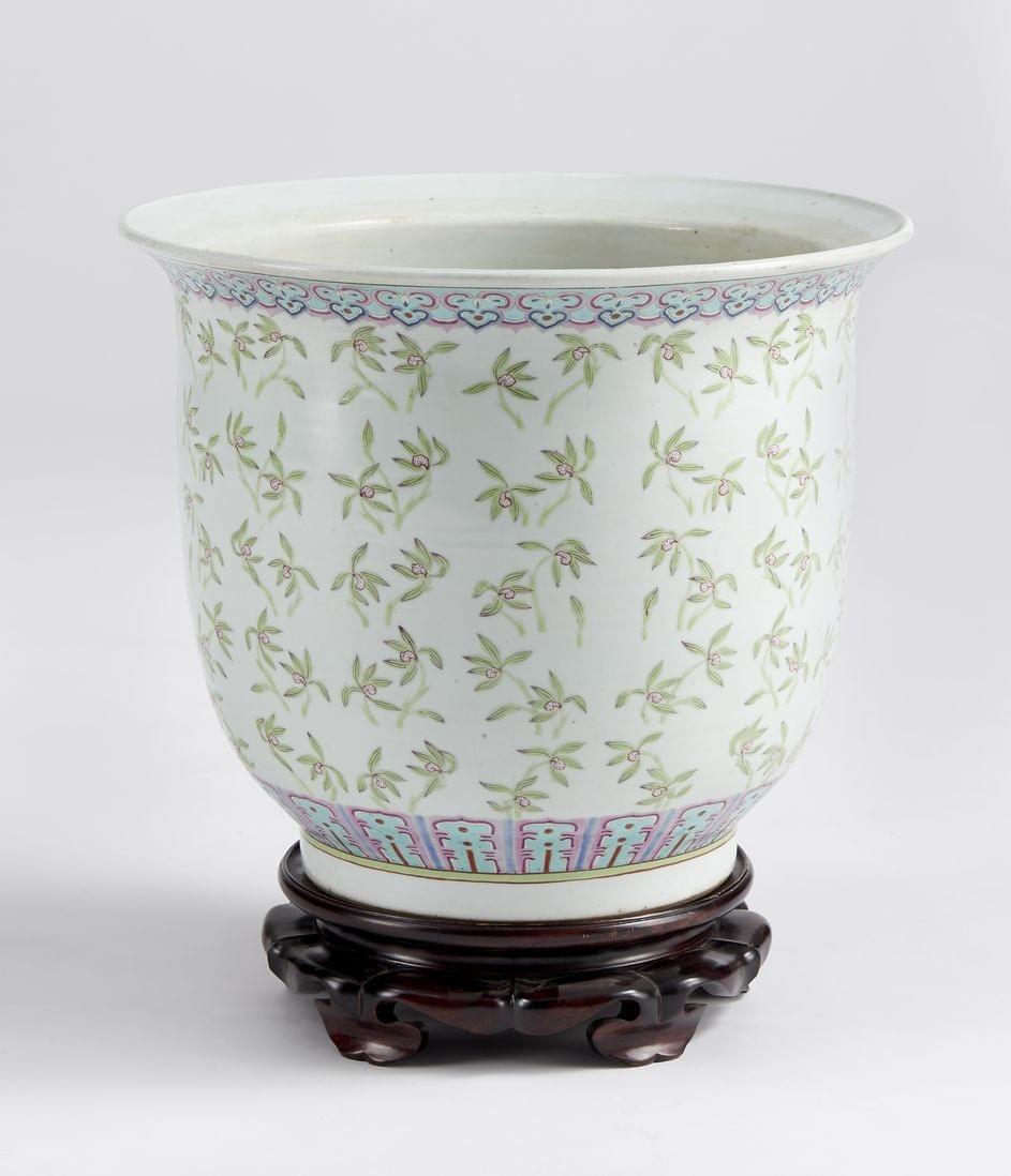 Porcelaine émaillée polychrome à décor de semis végétal, 36x42 cm