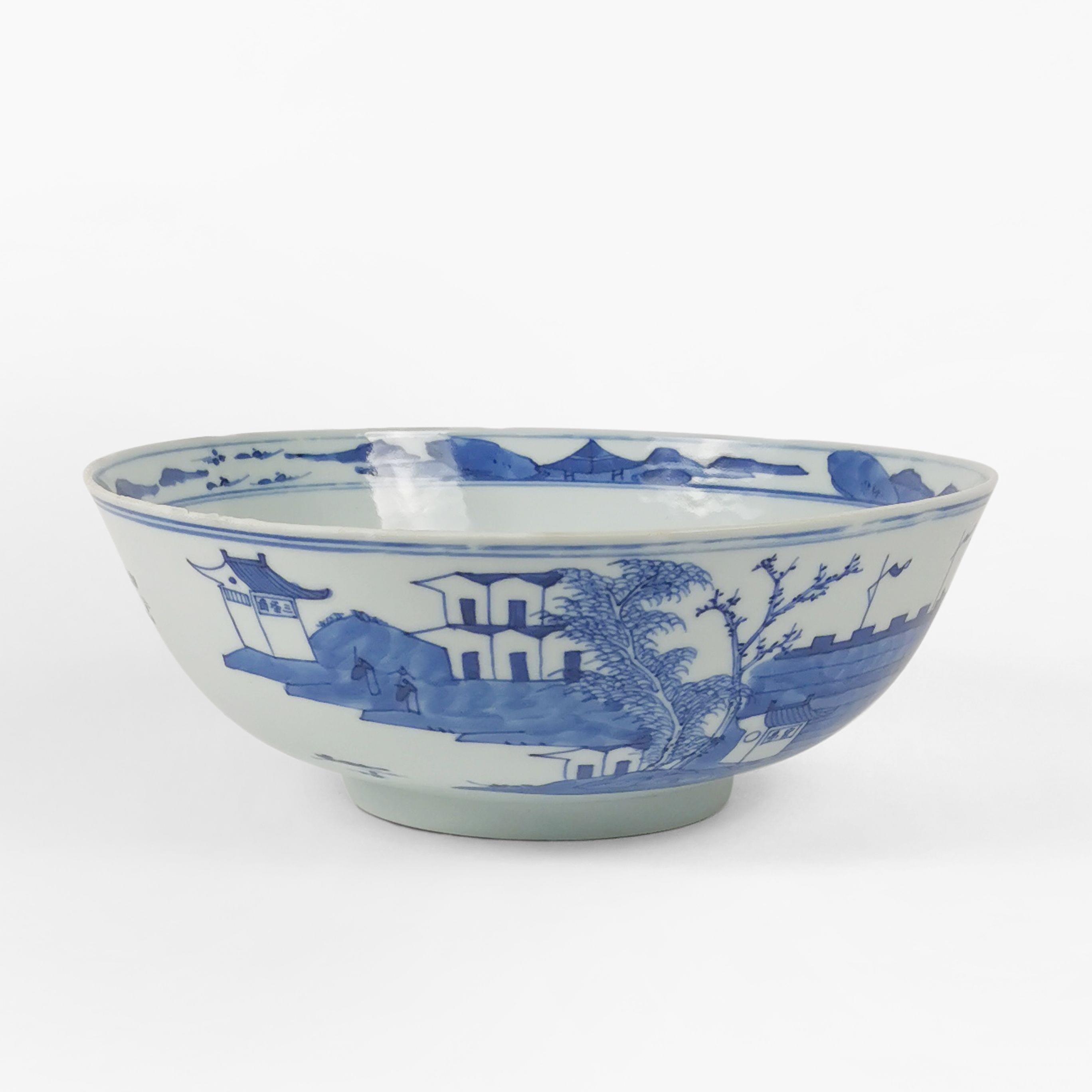 Porcelaine émaillée blanc bleu à motif au comptoir européen, D 25 cm