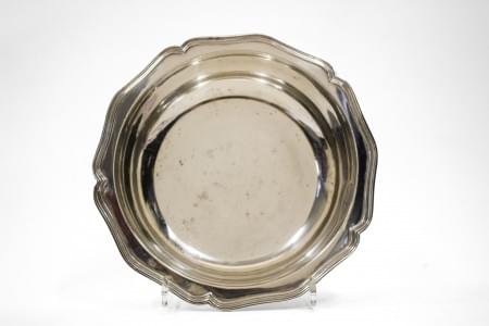 3545. Jatte à bordure mouvementée festonnée gravée d'un monogramme cou...