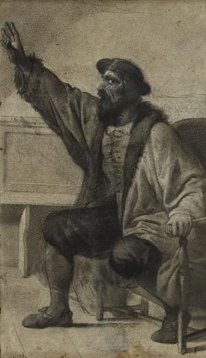 Portrait d'homme au manteau de fourrure, fusain et craie blanche...