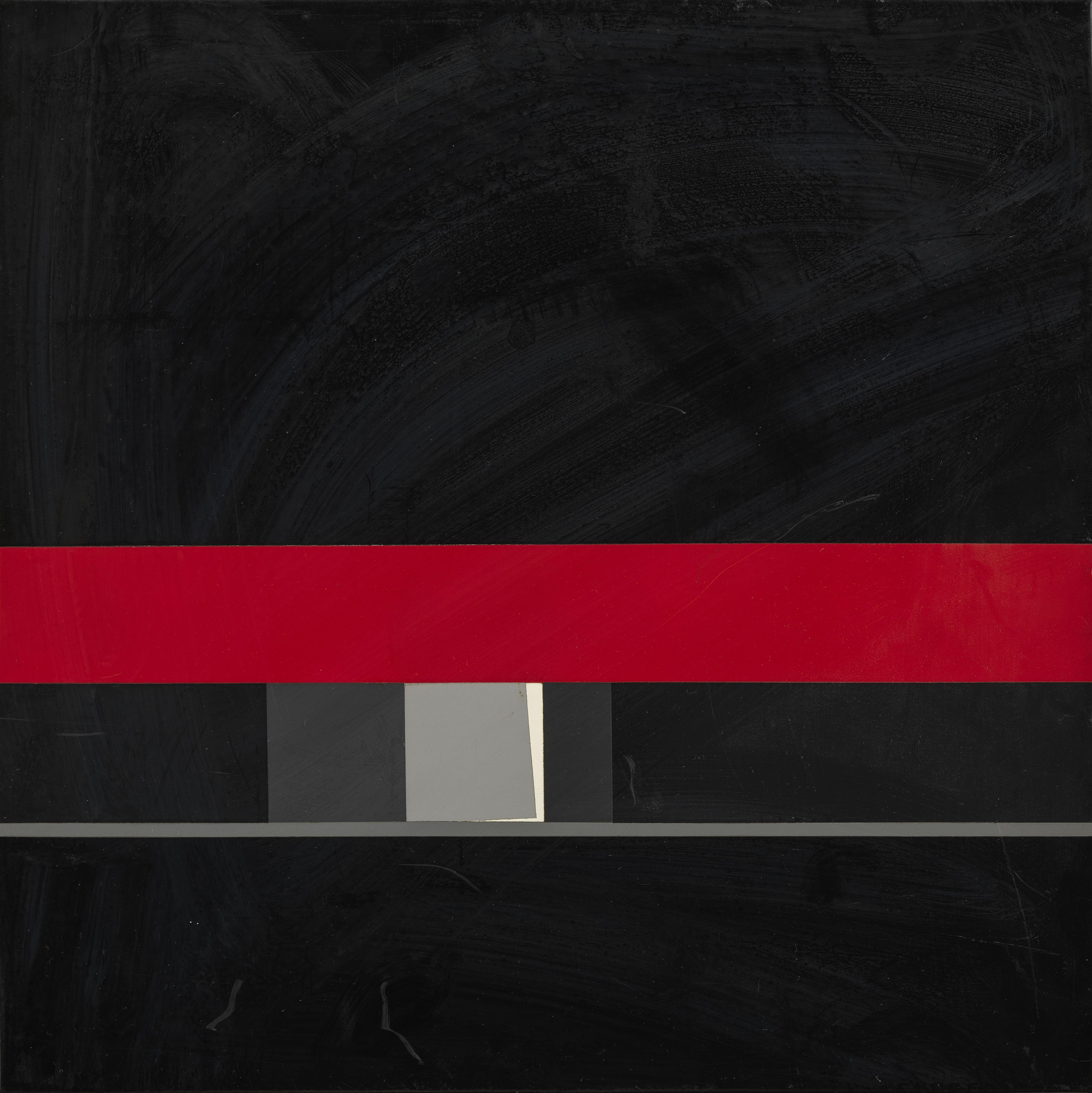 Composition rouge et noire, peinture cellulosique sur tôle, 40x40 cm