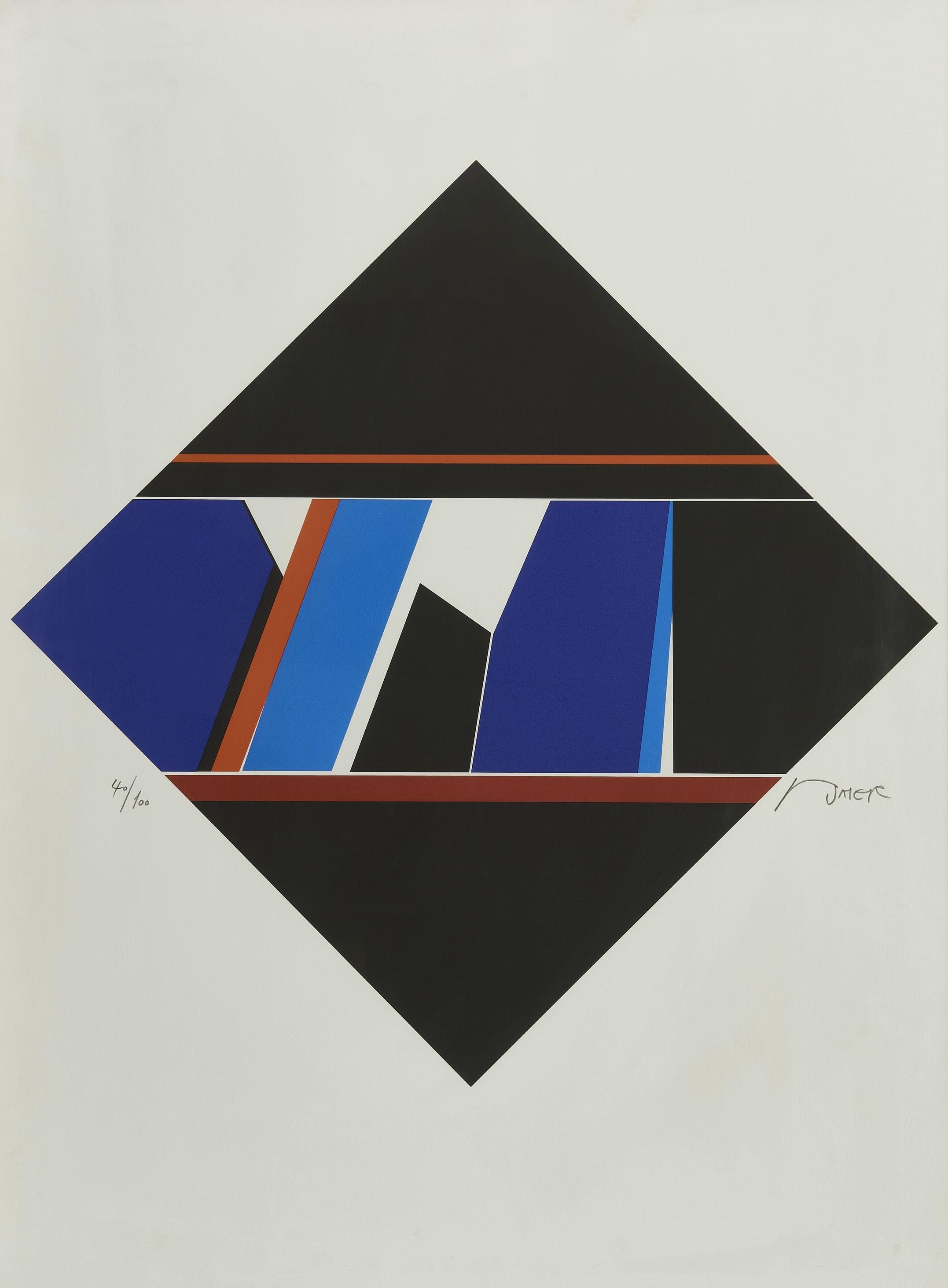 Composition en bleu, sérigraphie, signée et numérotée 141/200, 4...