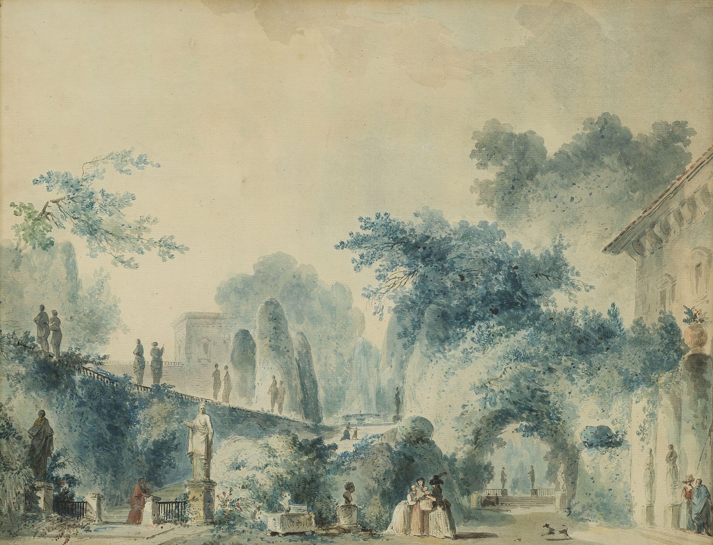 Jardin d'un palais italien, aquarelle sur papier, 33x42 cm. Provenance: Dr. G.F. Reber, Lausanne, 1925; vente Christie's, Londres, 9 décembre 1986, lot 151; collection privée USA; Galerie Perrin, Paris, 1987; couple d'amateurs en Suisse