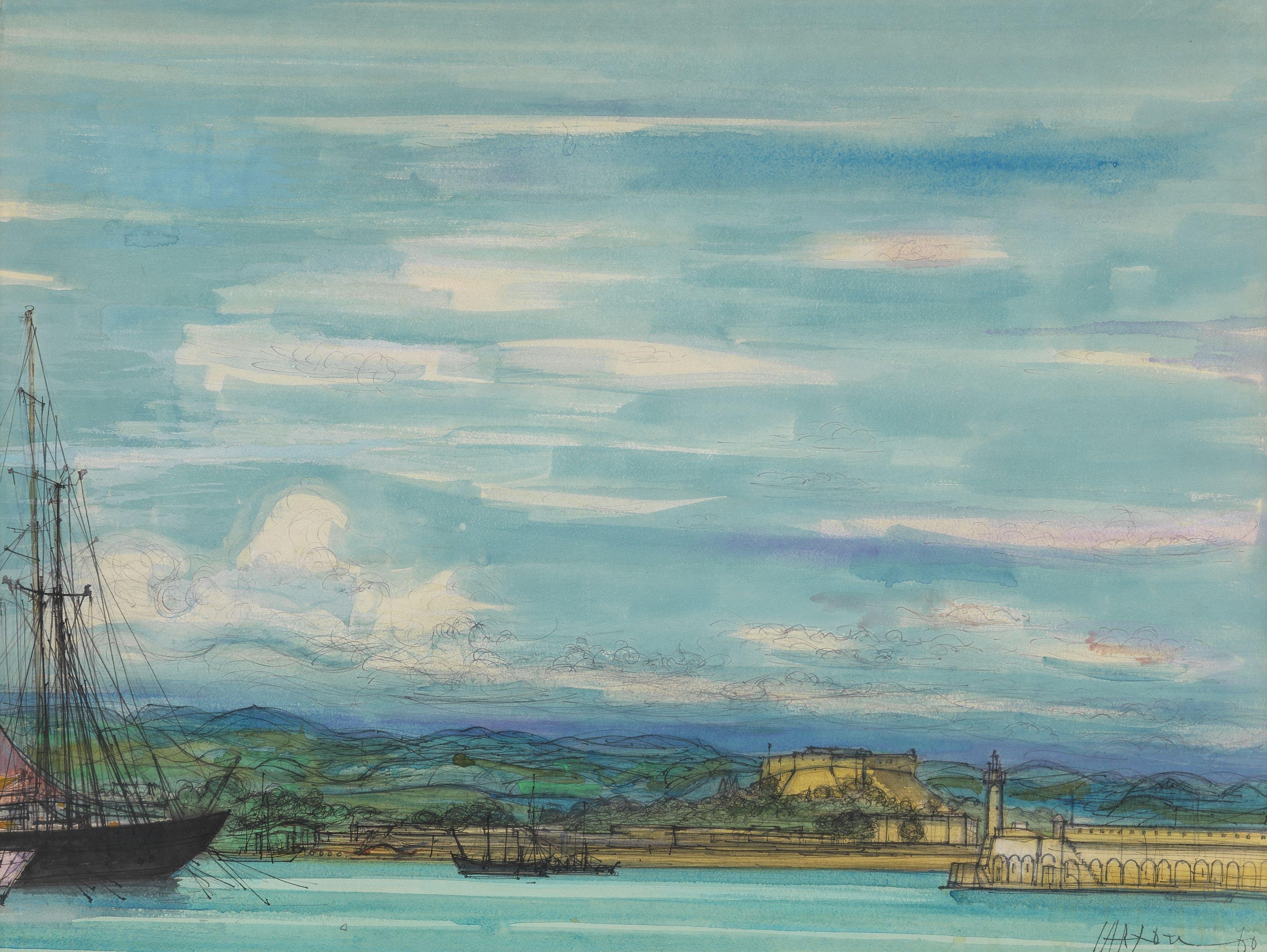 Petit paysage sombre, eau-forte à rehauts d'aquatinte, signée et...