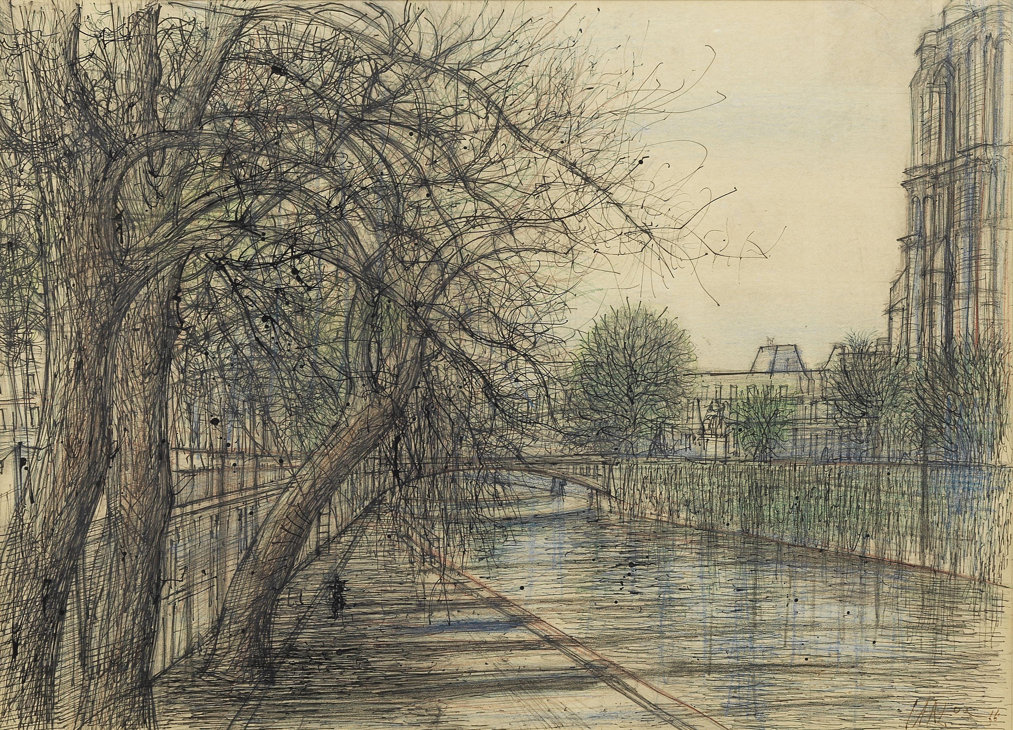 Réplique, aquarelle, pastel et crayon de papier, signé et daté 9...