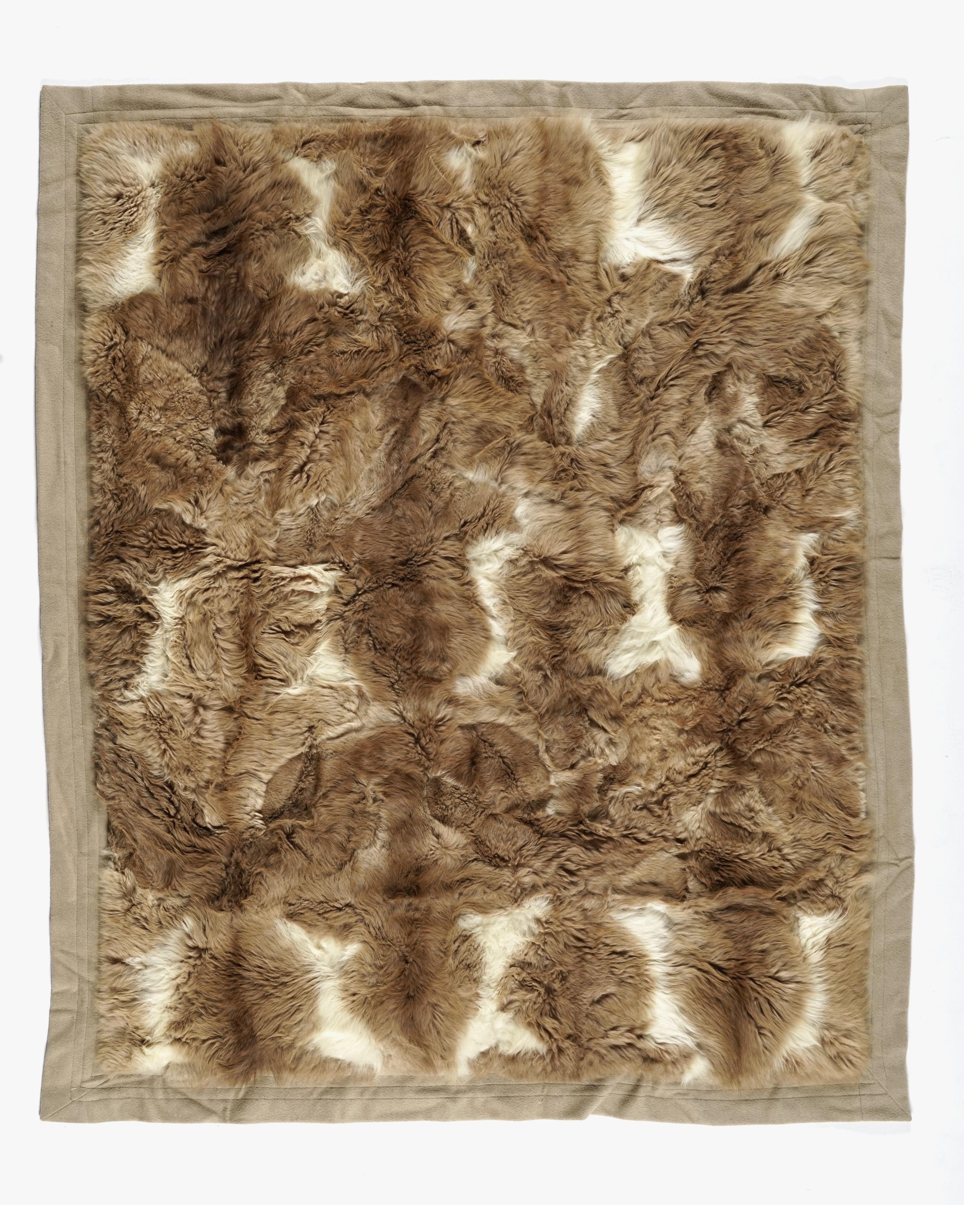 Fourrure fauve et blanche, bordure en tissu, 145x174 cm