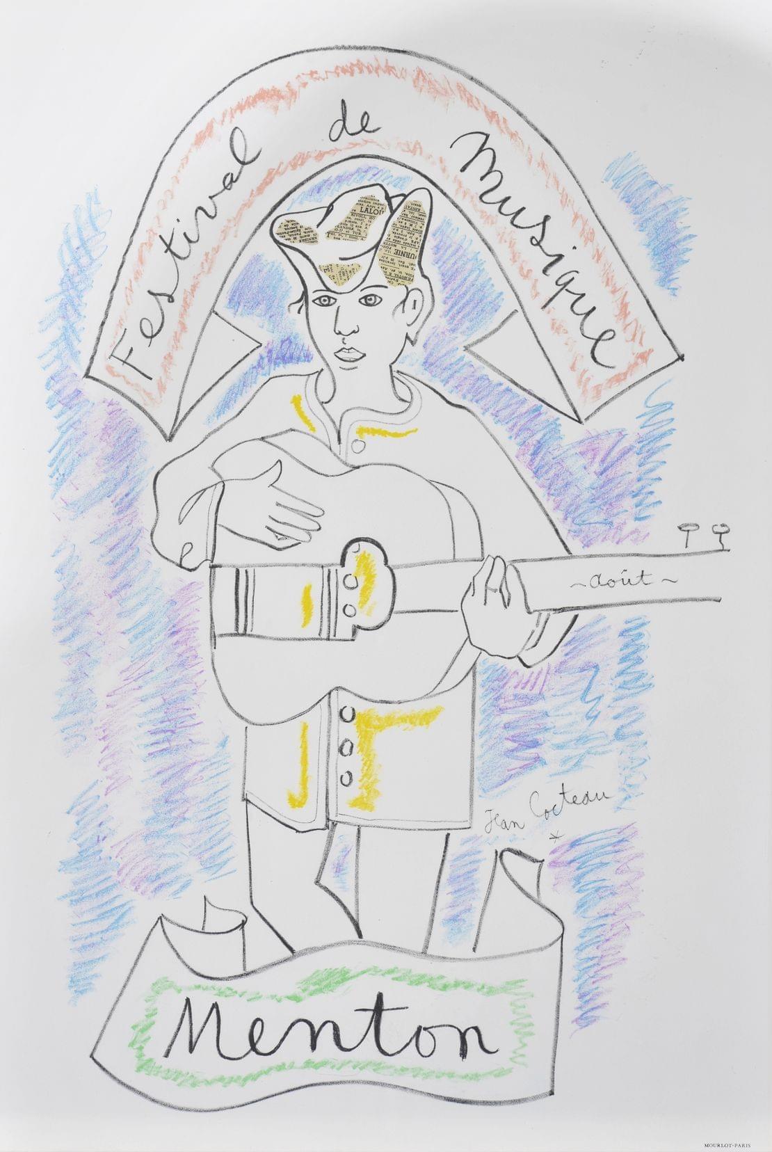 Affiche originale festival de musique Menton, lithographie éditée par Mourlot, Paris 1955, 65x44 cm