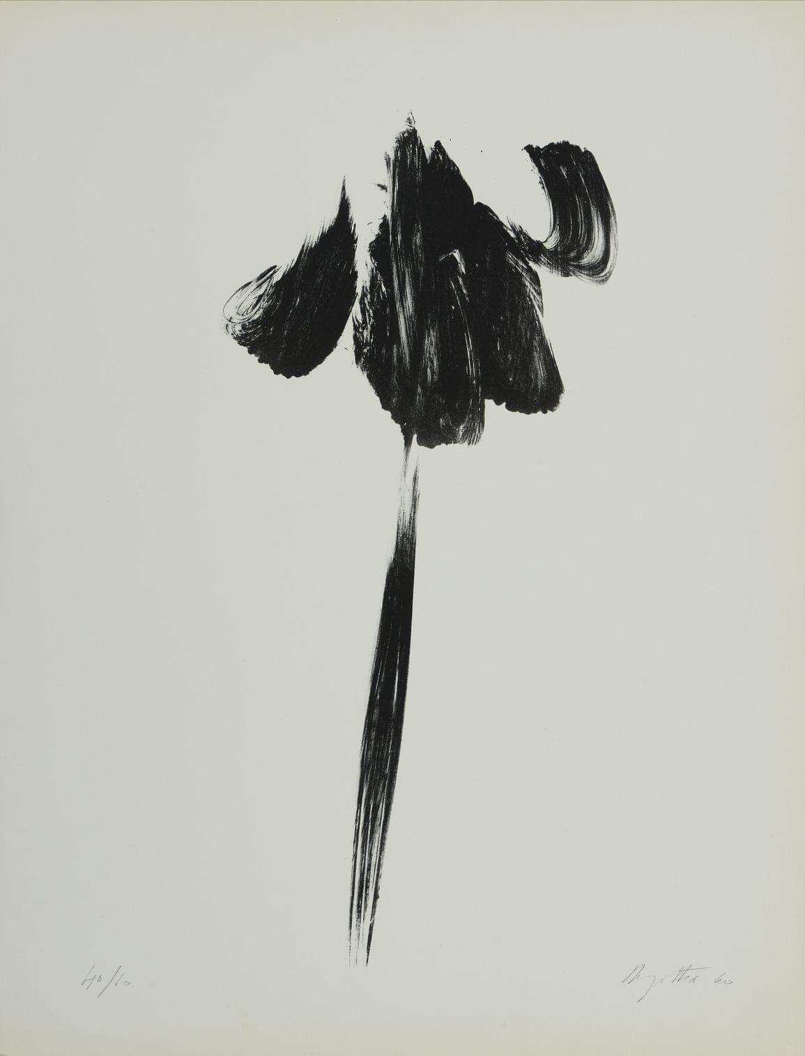Abstraction noire, lithographie, signée, datée 1960 et num 40/60, 75x55 cm