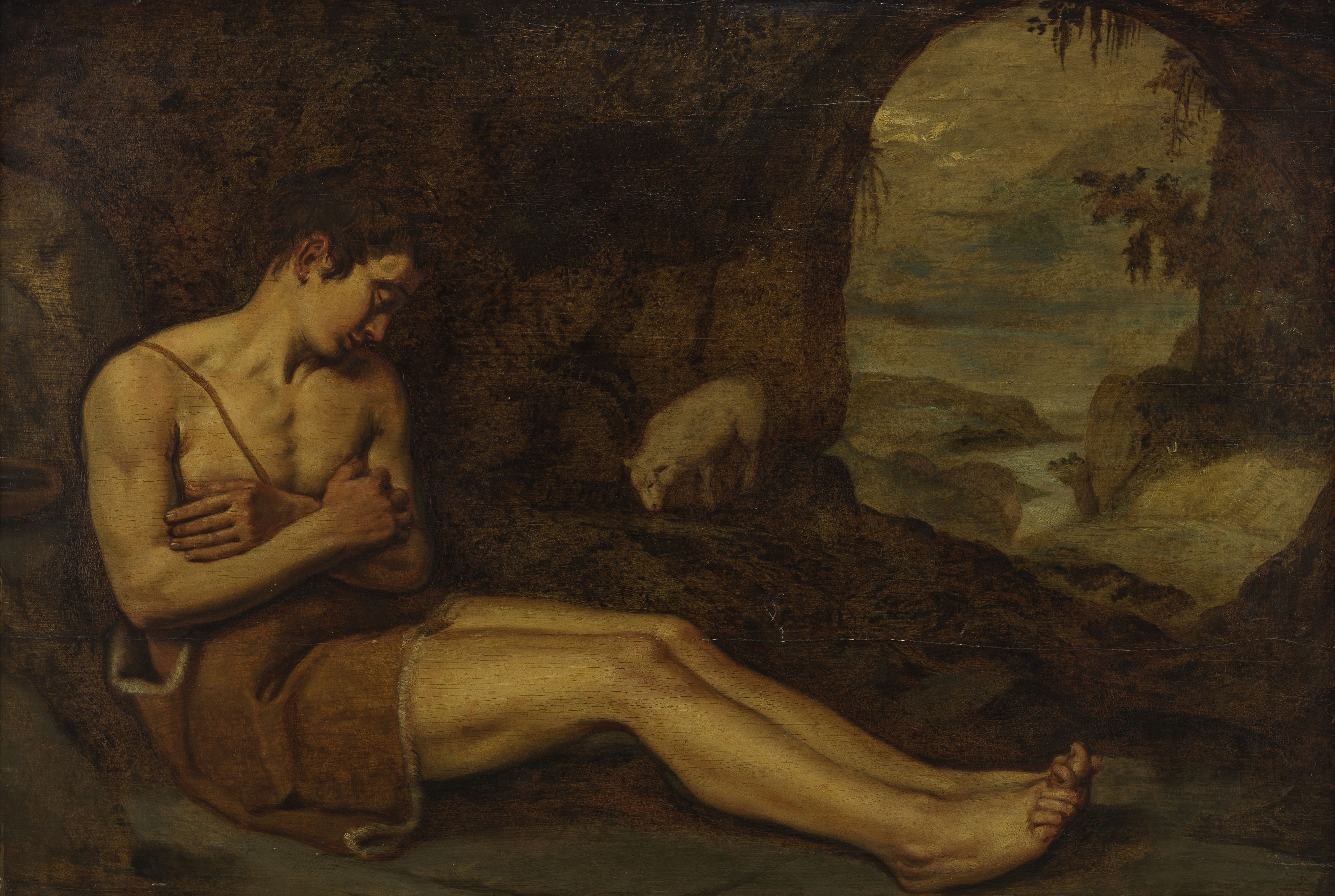 Saint Jean endormi dans une grotte, huile sur panneau, 75x104 cm