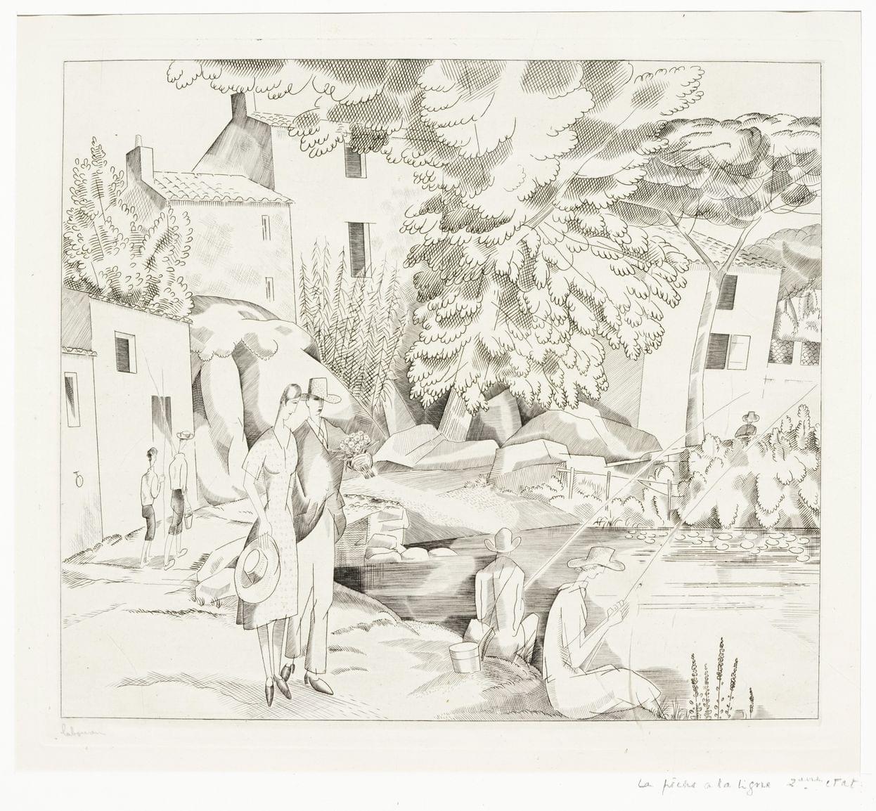La pêche à la ligne, eau-forte, deuxième état, signée, 25,5x28 cm