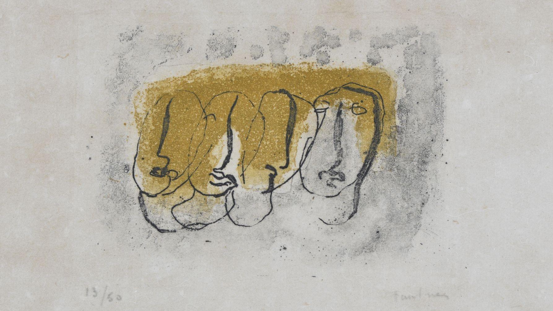 Quatre visages, eau-forte à rehauts d'aquatinte signée, n° 13/50, 10x13 cm