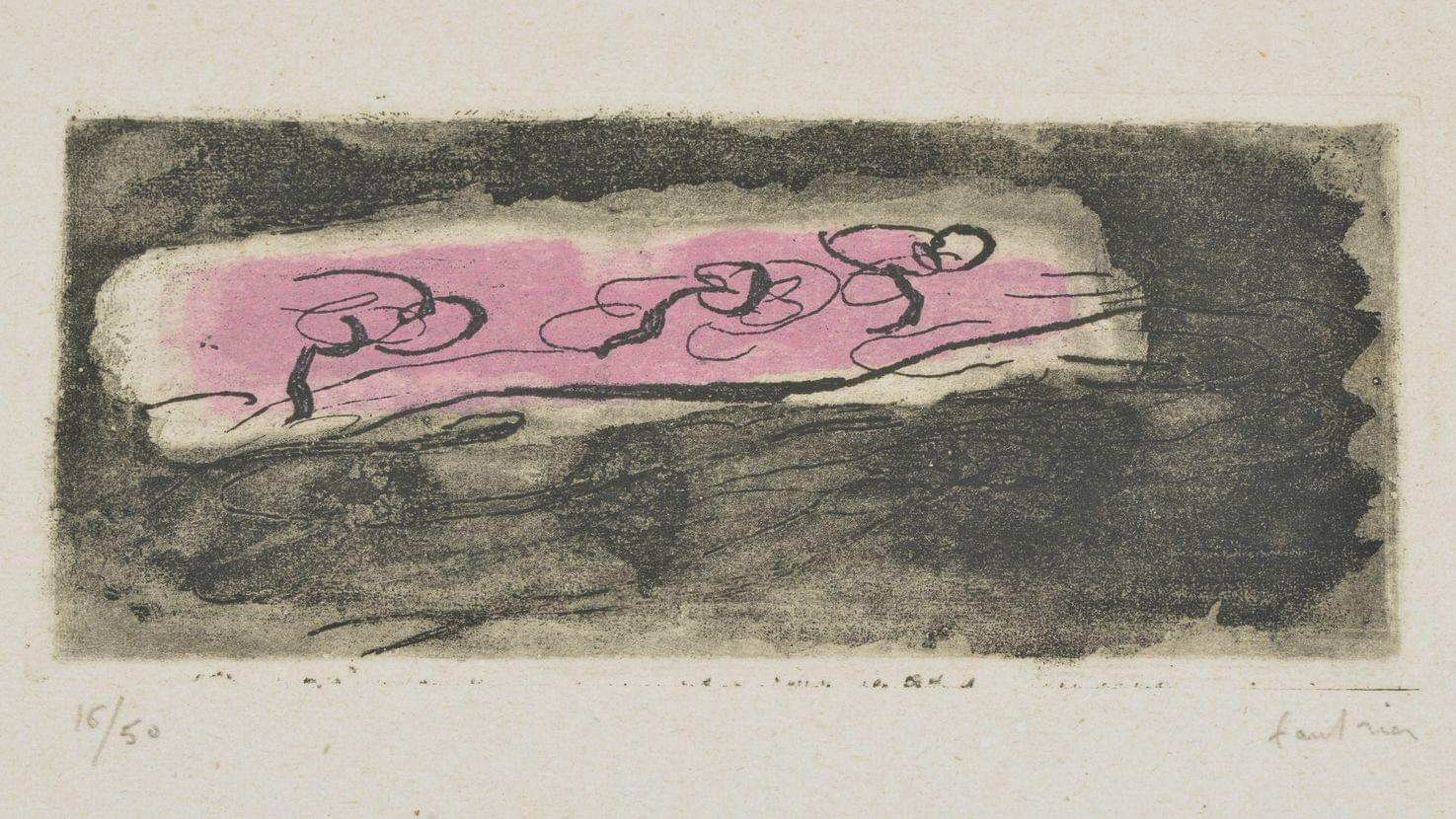 Petit paysage sombre, eau-forte à rehauts d'aquatinte signée, n° 16/50, 8x18 cm