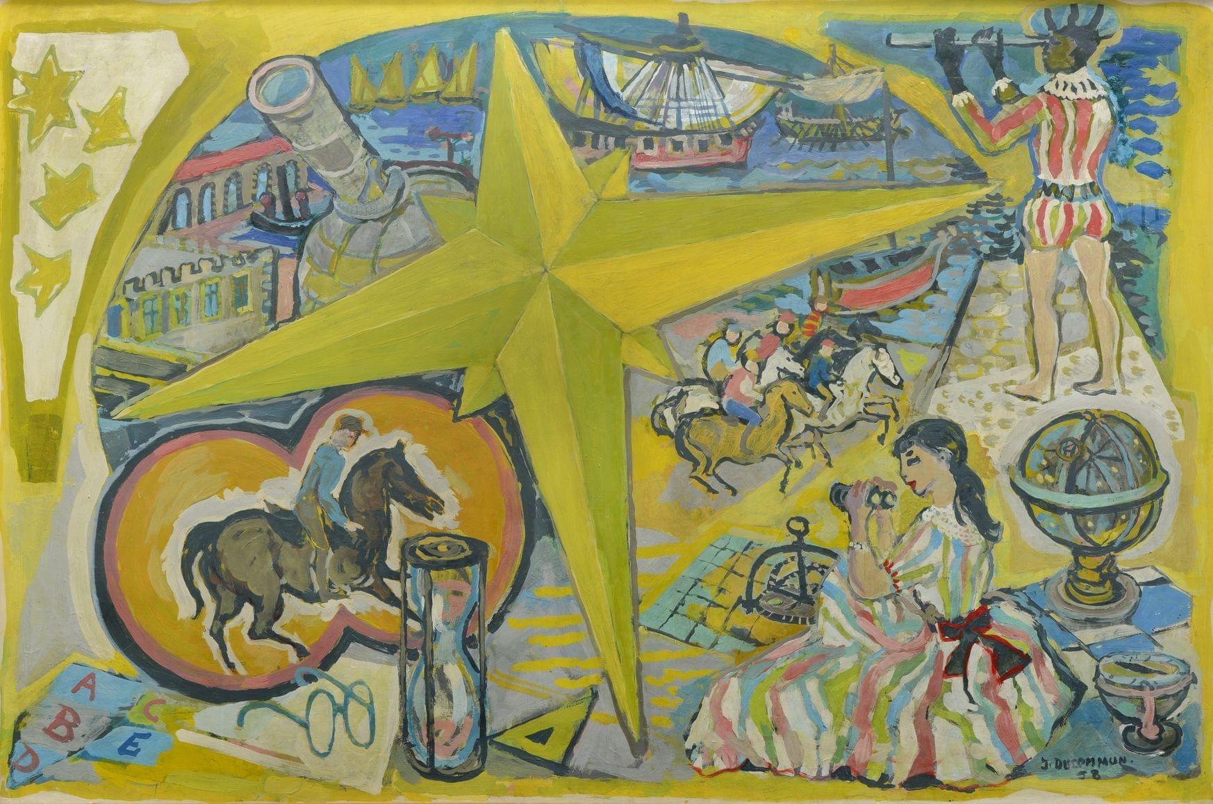 L'exploration, huile sur panneau signée et datée 58, 90 x 136 cm
