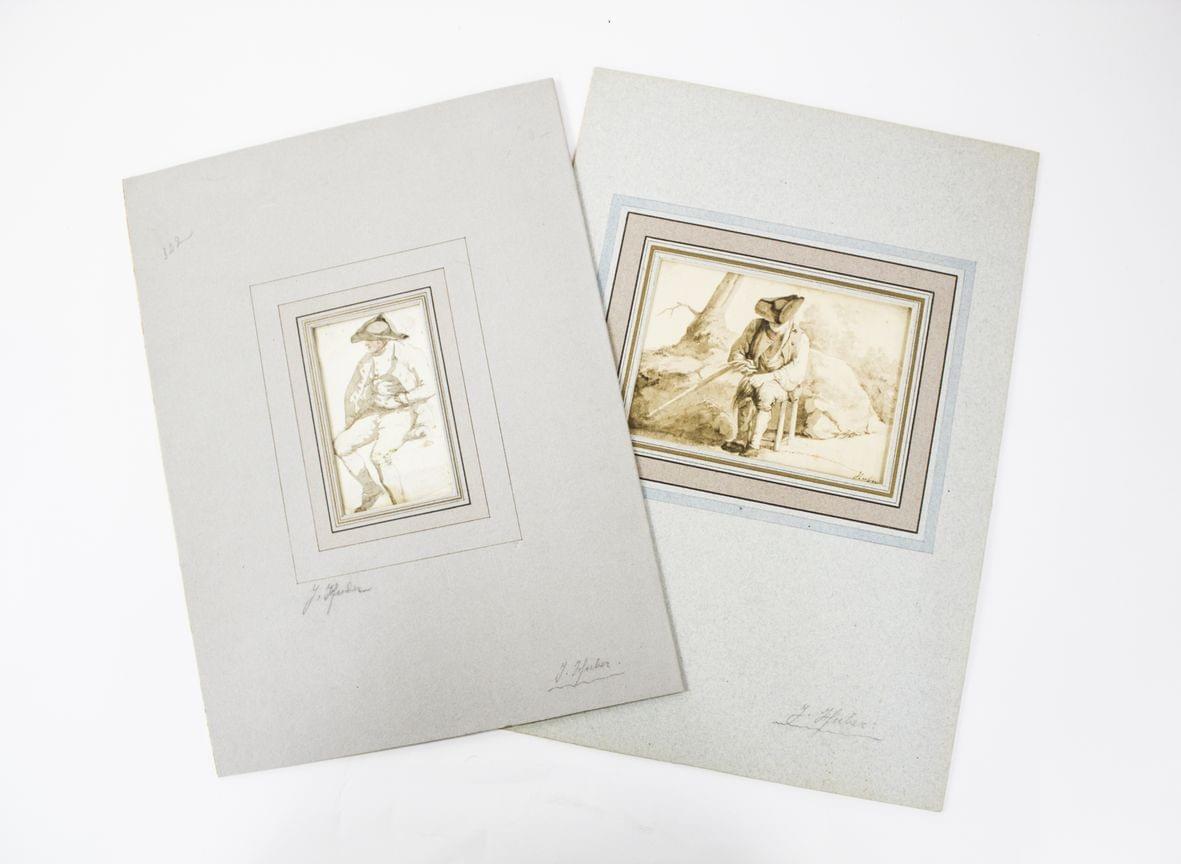 Hommes assis, lavis et dessin aquarellé sur papier, 12x8 et 11x16 cm