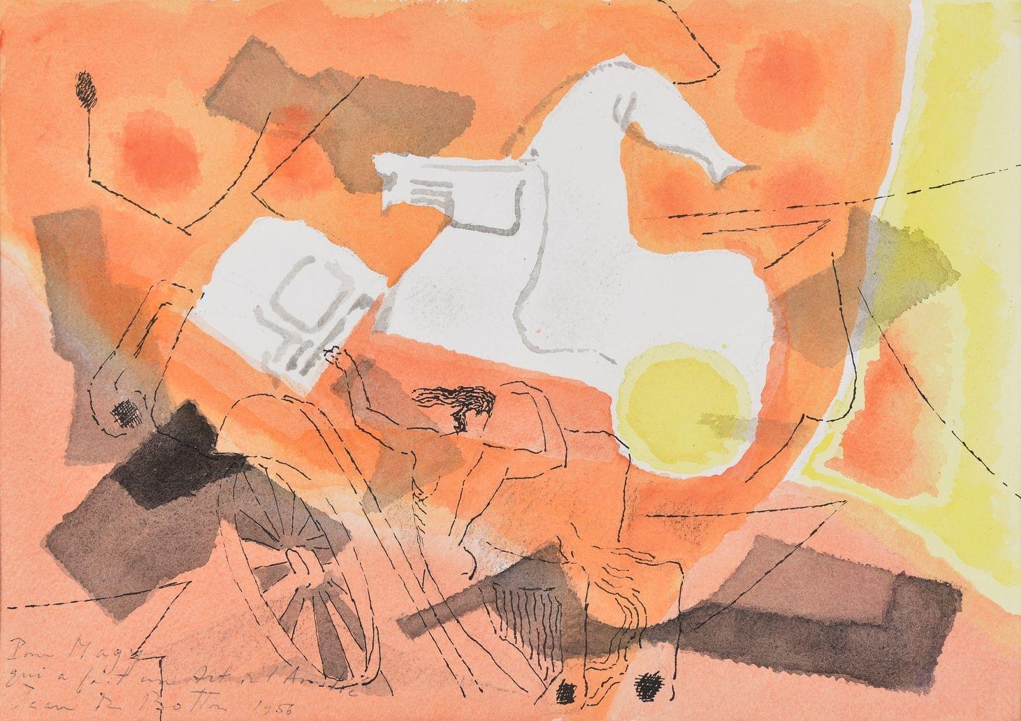 Composition surréaliste sur papier, signée avec envoi, datée 1956, 24x34 cm