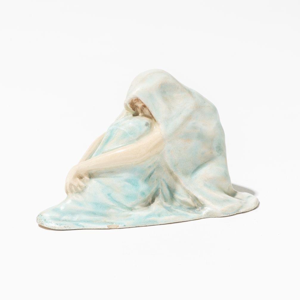Femme drapée, céramique émaillée polychrome, signée, H 7 cm