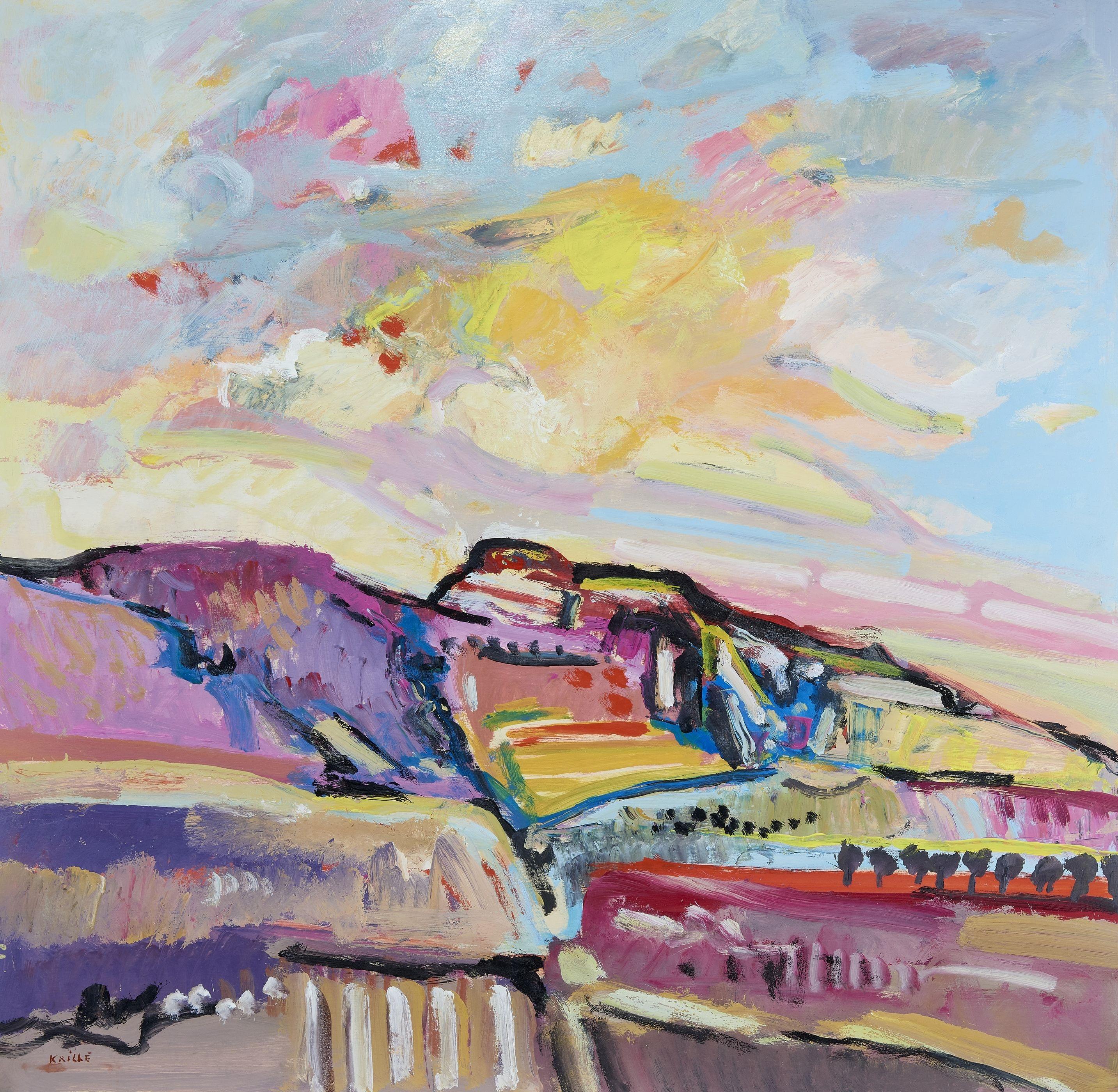 Paysage, huile sur panneau, 99x99 cm