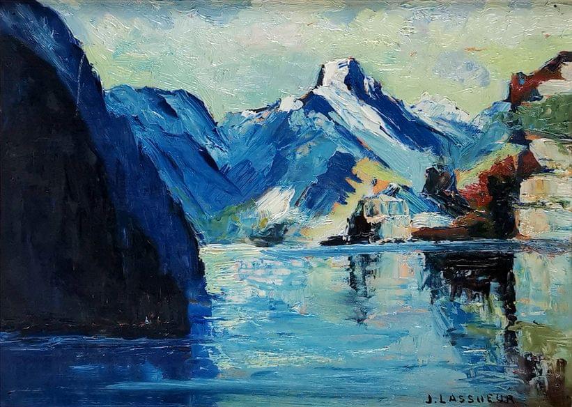Brunnen, huile sur panneau, signée, 22x30 cm