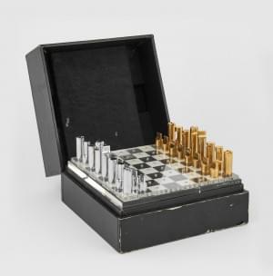 Jeu d'échecs, bronze et métal chromé, signé et numéroté 111/250,...