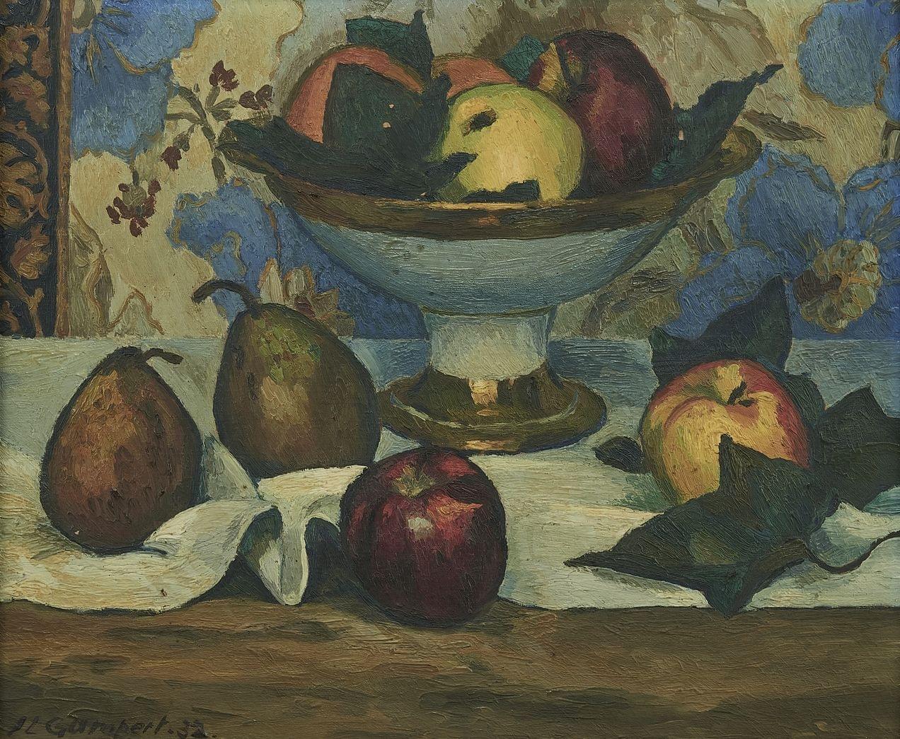 Coupe de fruits, huile sur toile, signée et datée 32, 46x38 cm