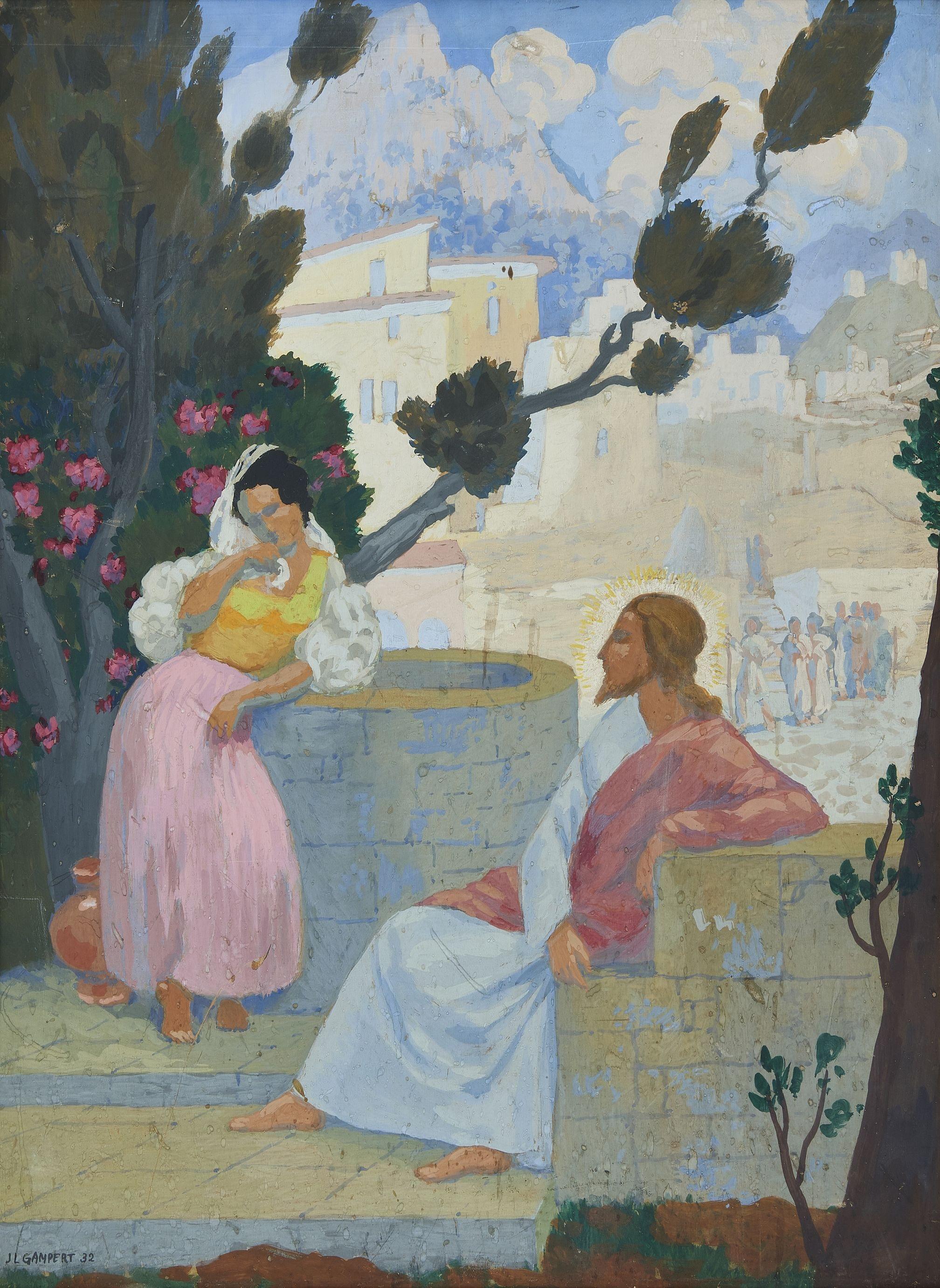 Le Christ et la Samaritaine, huile sur panneau, signée et datée 32, 81x61 cm