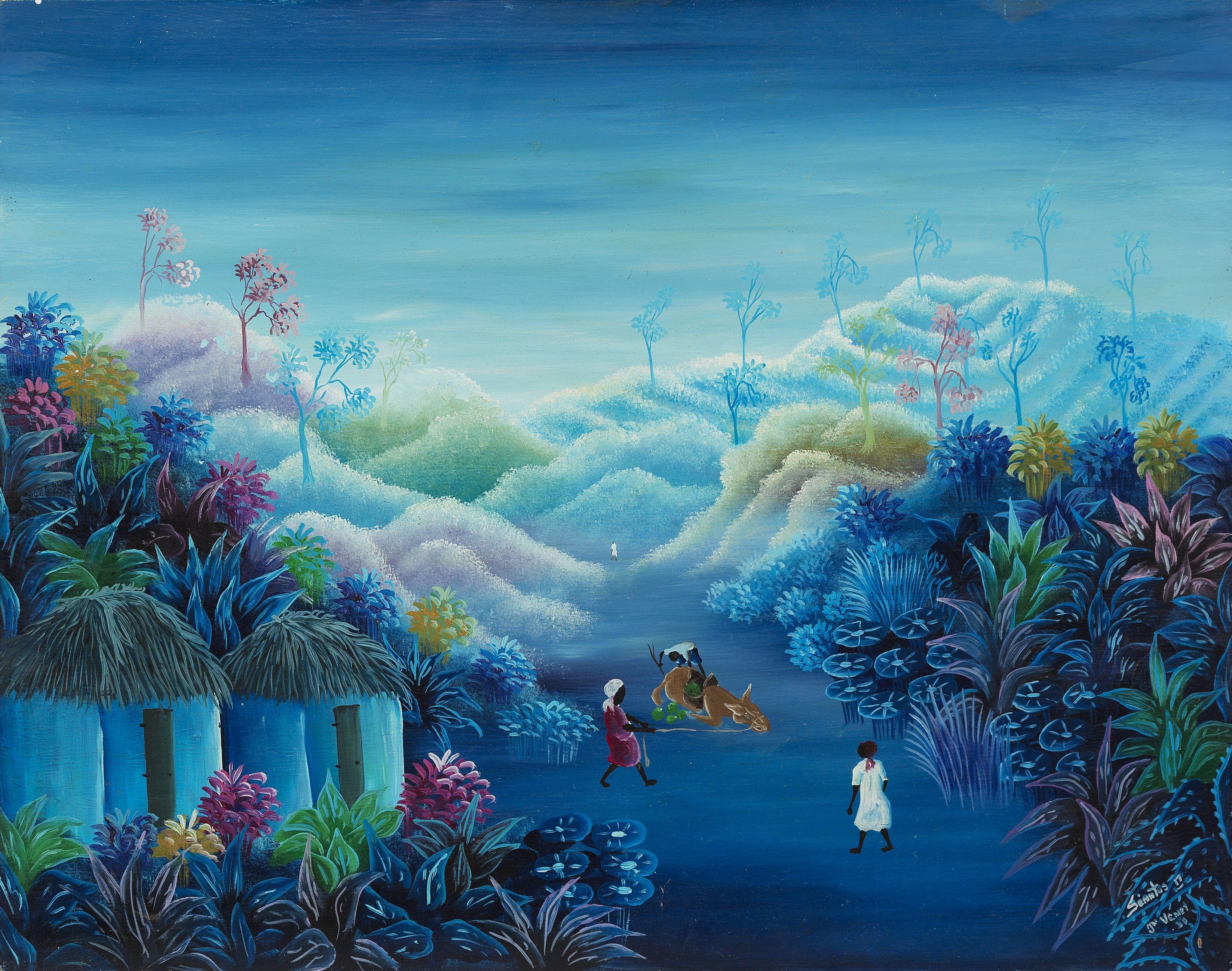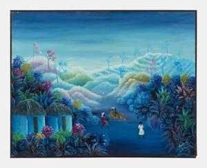 Paysage animé, huile sur toile, signée, 61x61 cm