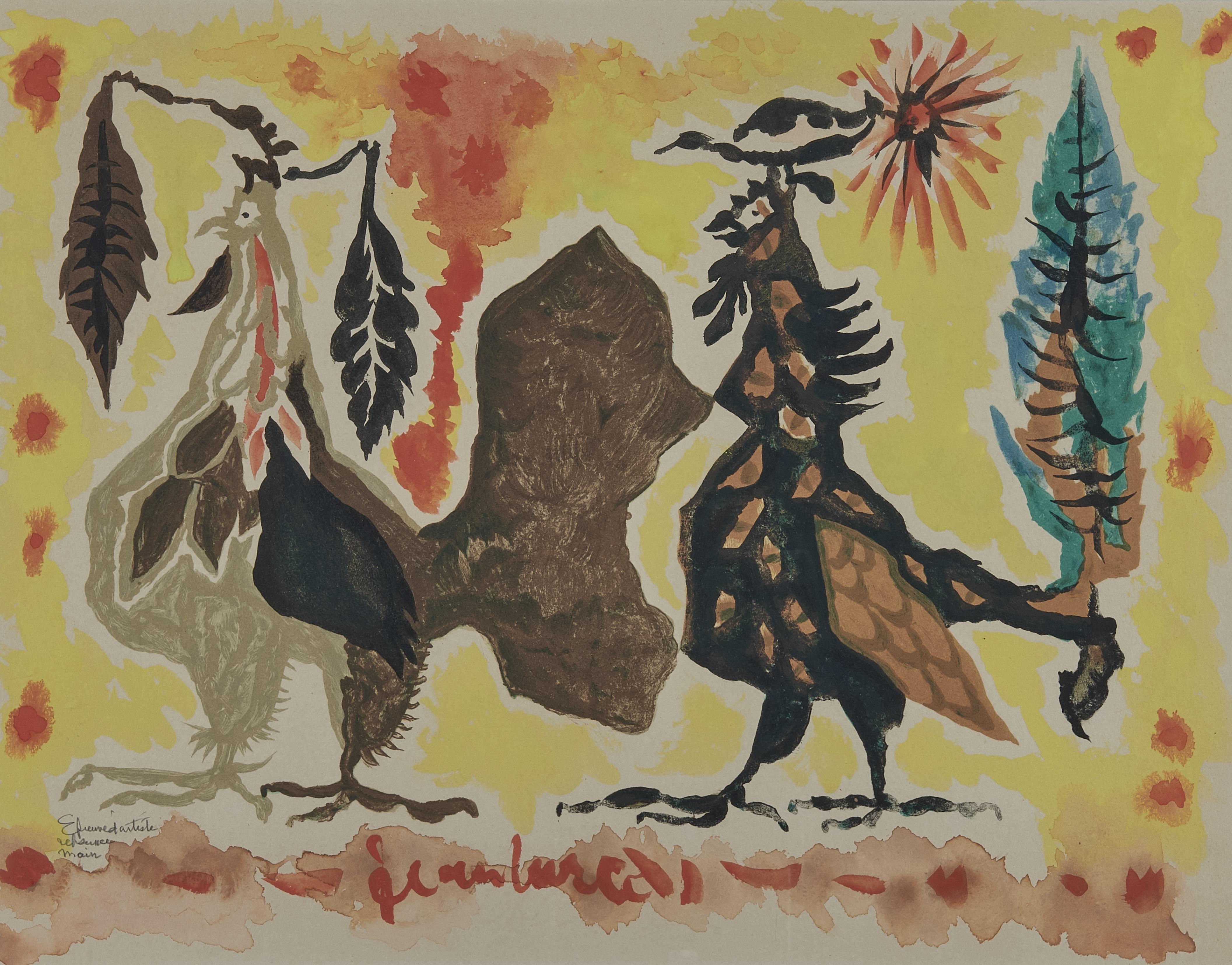 Le bestaire fabuleux, lithographie rehaussée à l'aquarelle, signée, 42x54 cm