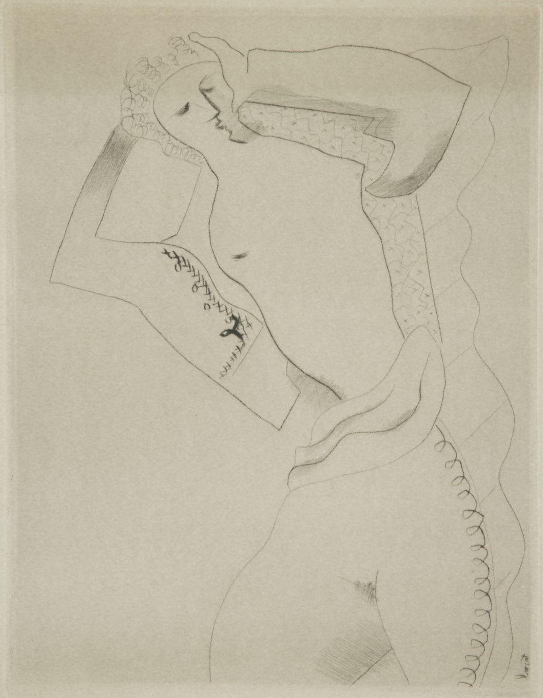 Personnage à la redingote et au bonnet, pointe sèche signée dans...