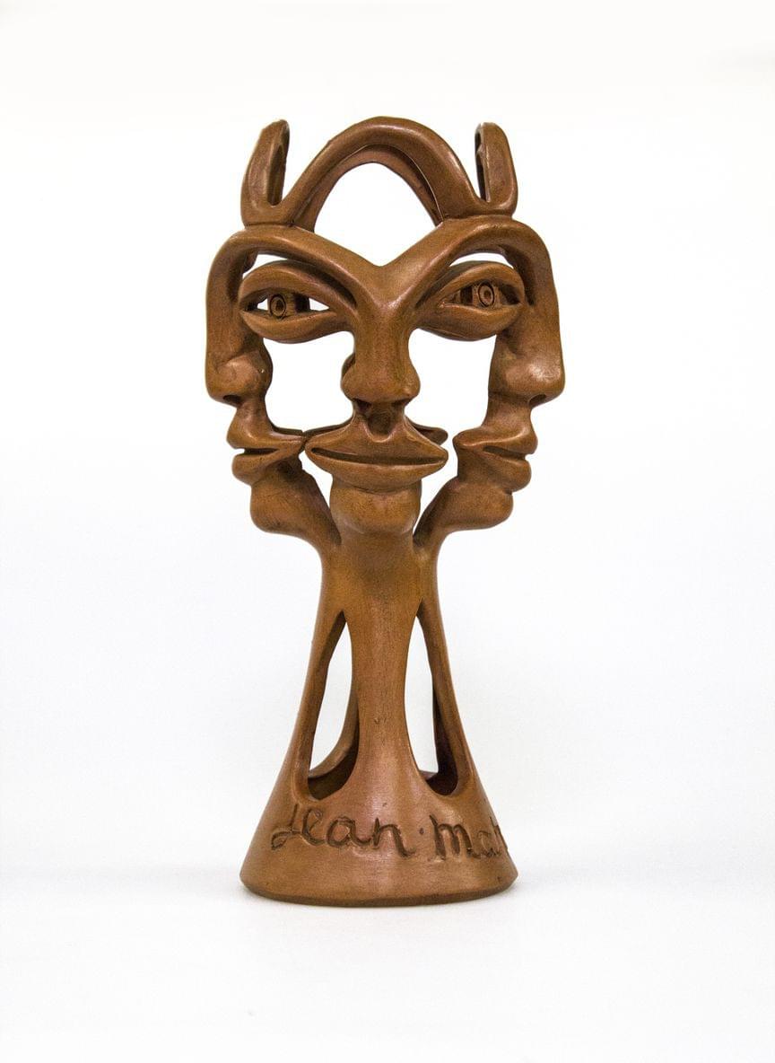 Quatre visages ajourés, terre cuite, H 30,5 cm
