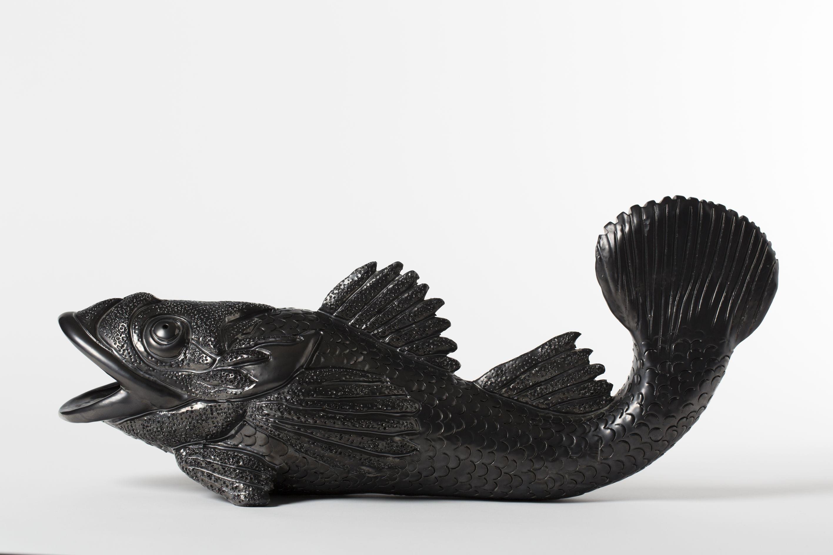 Taureau aquamanile, céramique lustrée noire, H 40 cm