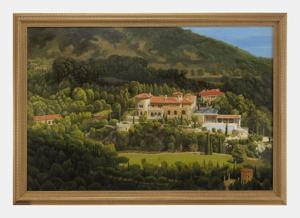 Vue d'une villa en Italie, huile sur toile, 79x119 cm