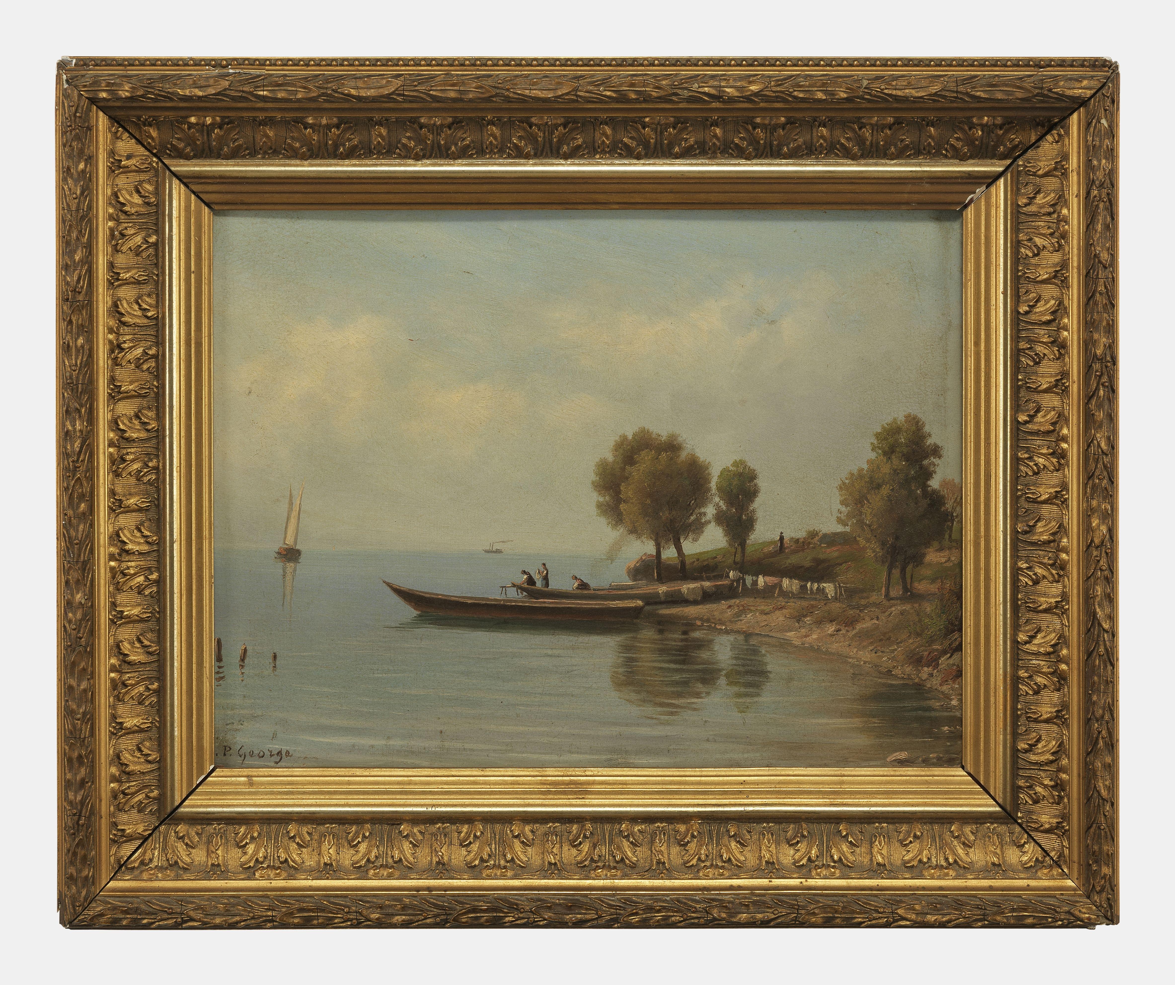 Ancien port de Versoix, huile sur carton, signée, 27x34,5 cm