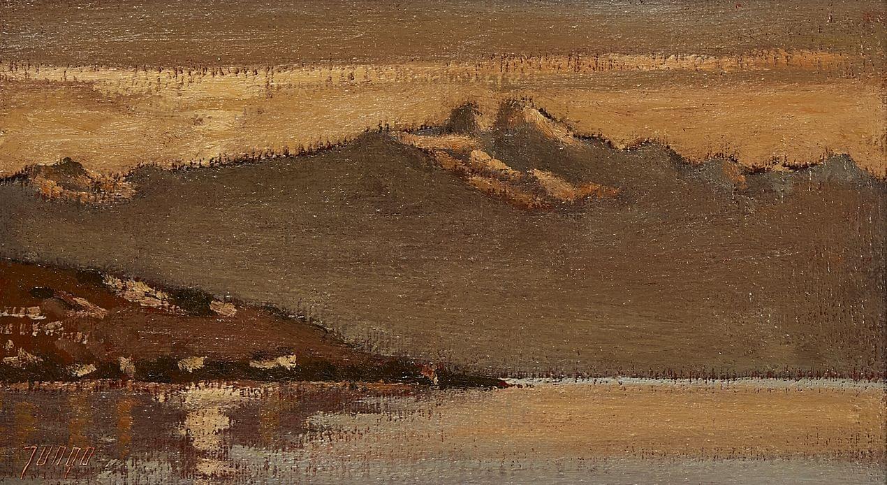 Aube à Cully, huile sur panneau, signée, 18x33 cm