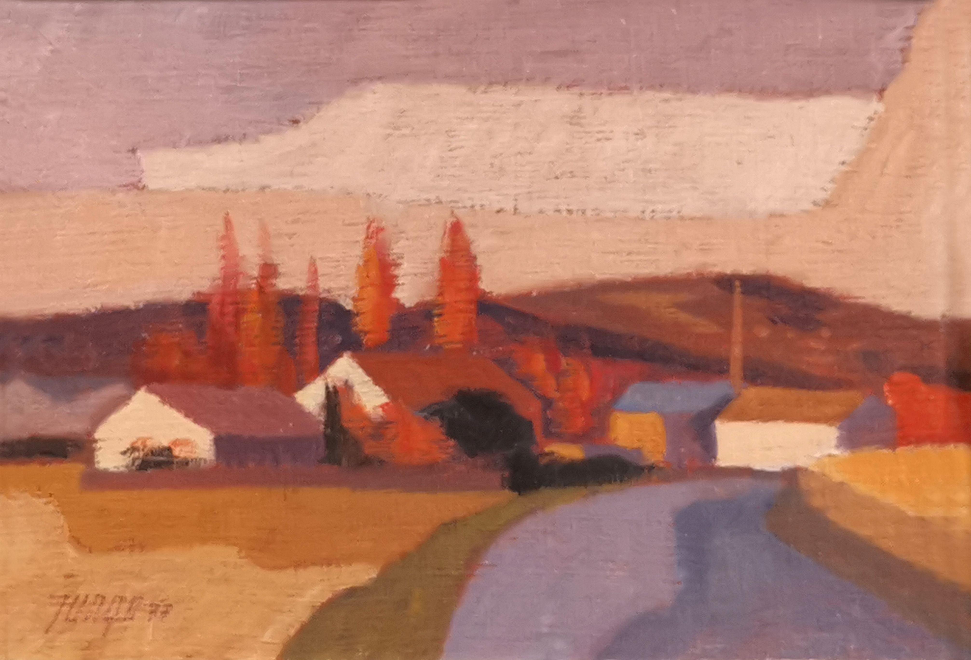 Automne à Coinsins, huile sur toile, signée et datée 77, 24x35 cm