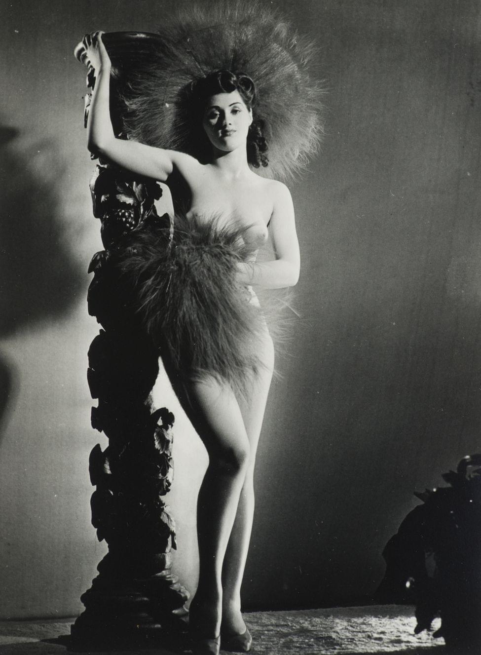 Nu aux plumes, tirage argentique en noir et blanc, 18,5x13,5 cm