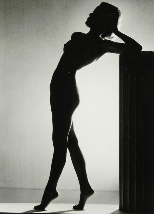Jeune femme nue à contre-jour, tirage argentique en noir et blanc, 18x14 cm