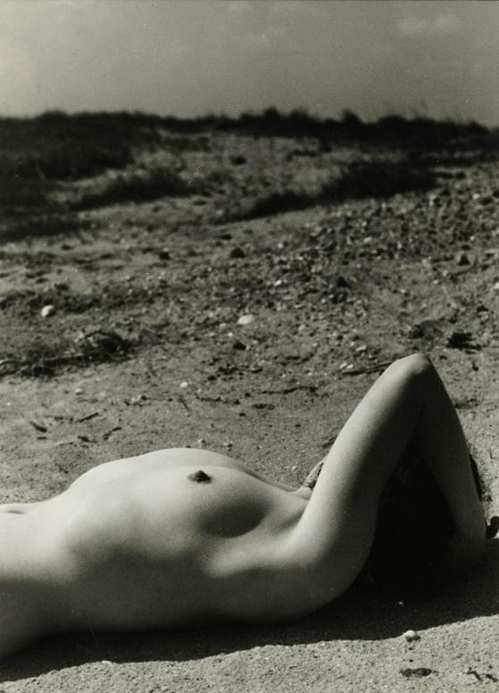 Nu sur le sable, tirage argentique en noir et blanc, 18,5x13,5 cm