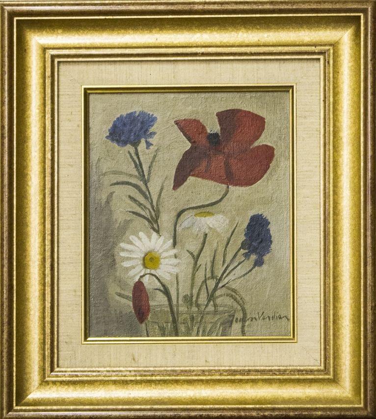 Fleurs des champs, huile sur toile, signée, 21x17 cm