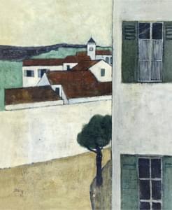 Vue de village, huile sur toile, signée, 74x61 cm