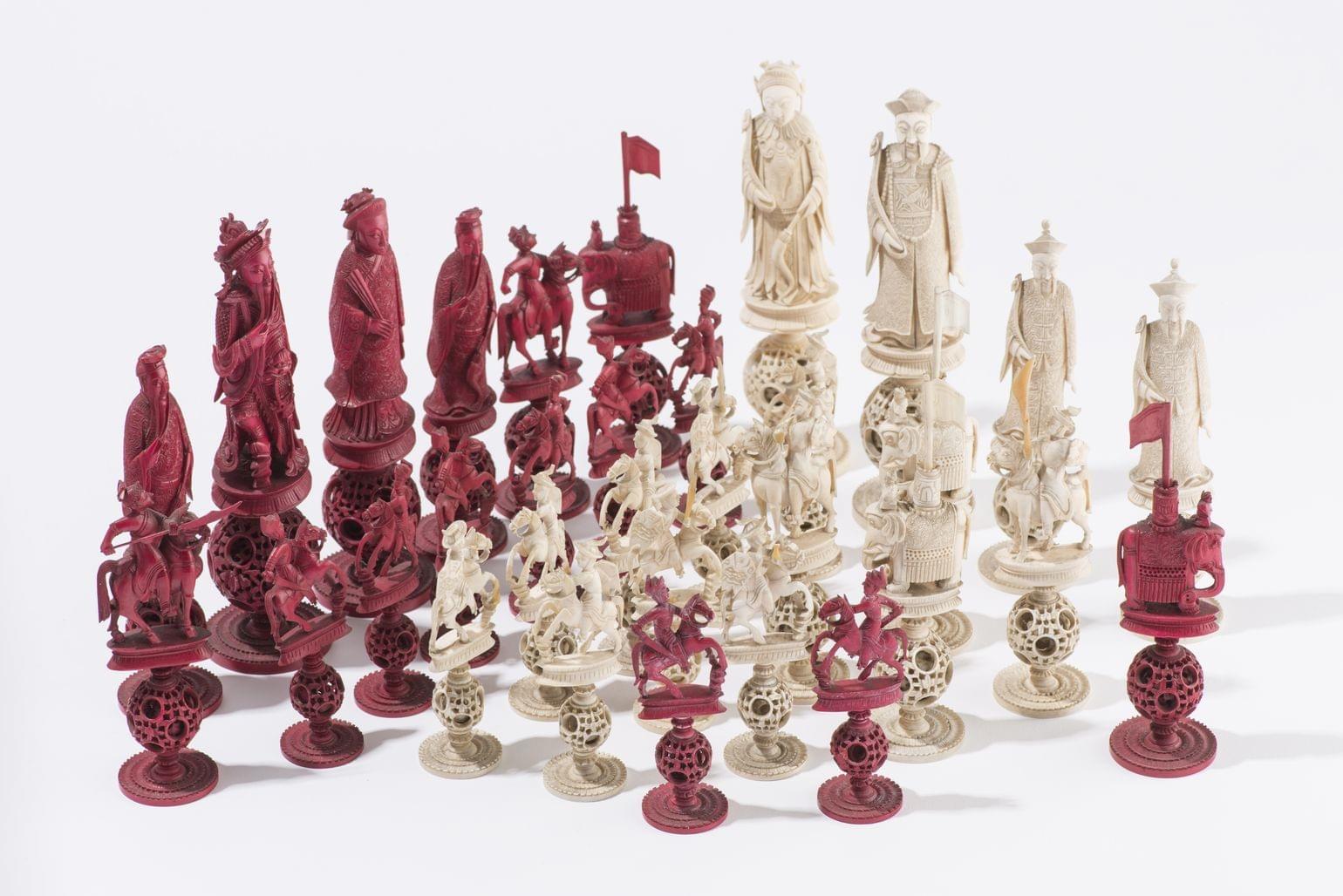Ivoire et ivoire sculpté teinté rouge, Chine, début XXe s