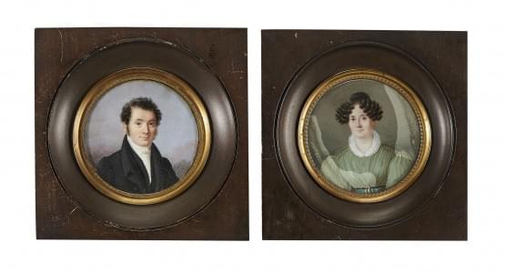 Monsieur et Madame Antoine Anspach, paire de miniatures à la gou...