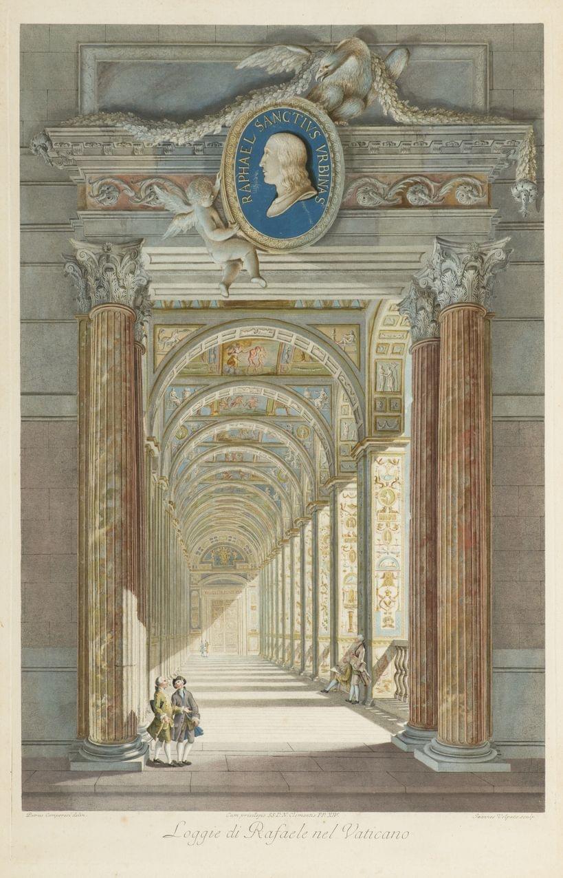 Les loges de Raphaël au Vatican avec privilège de Clément XIV, gravure en couleurs, 66x44 cm
